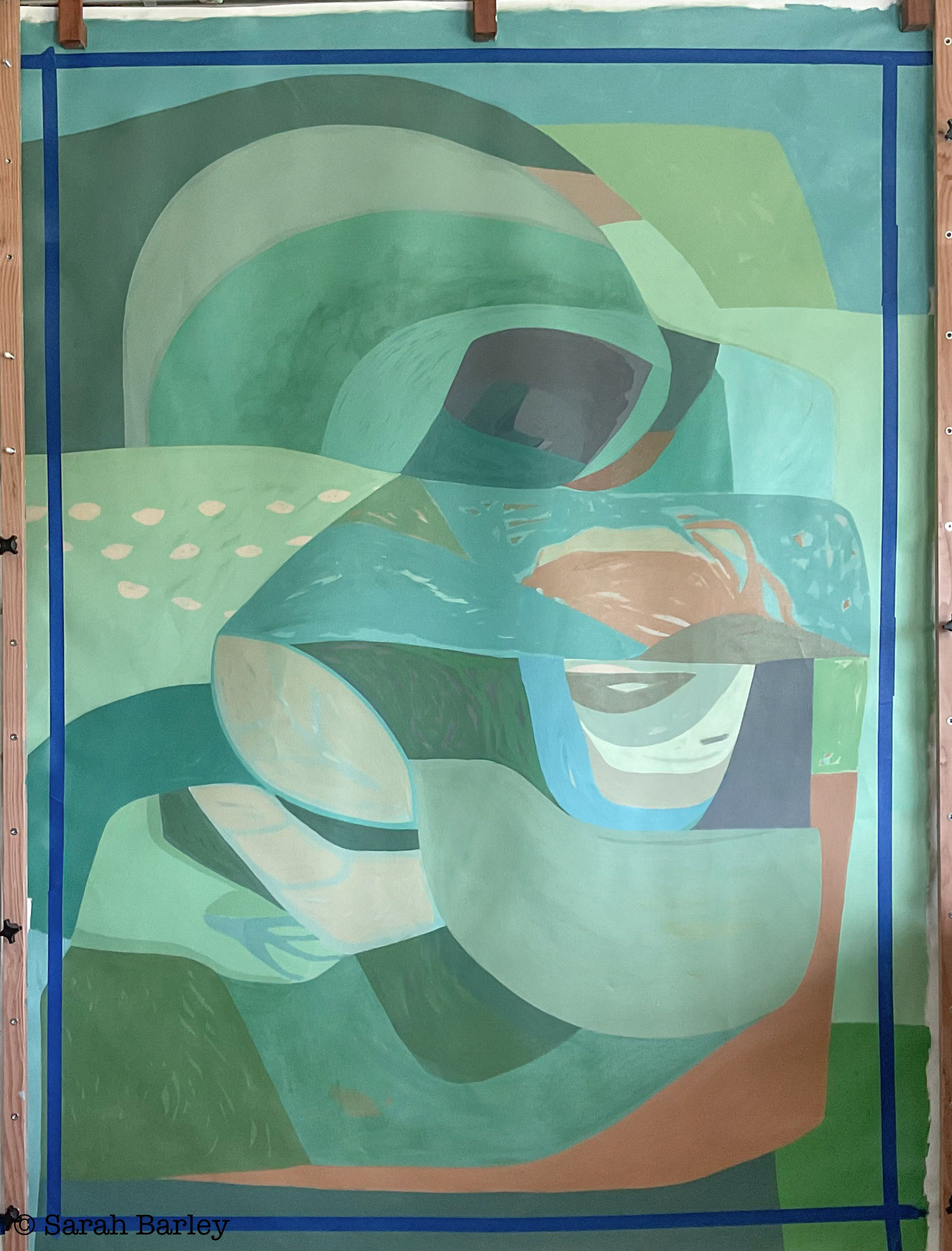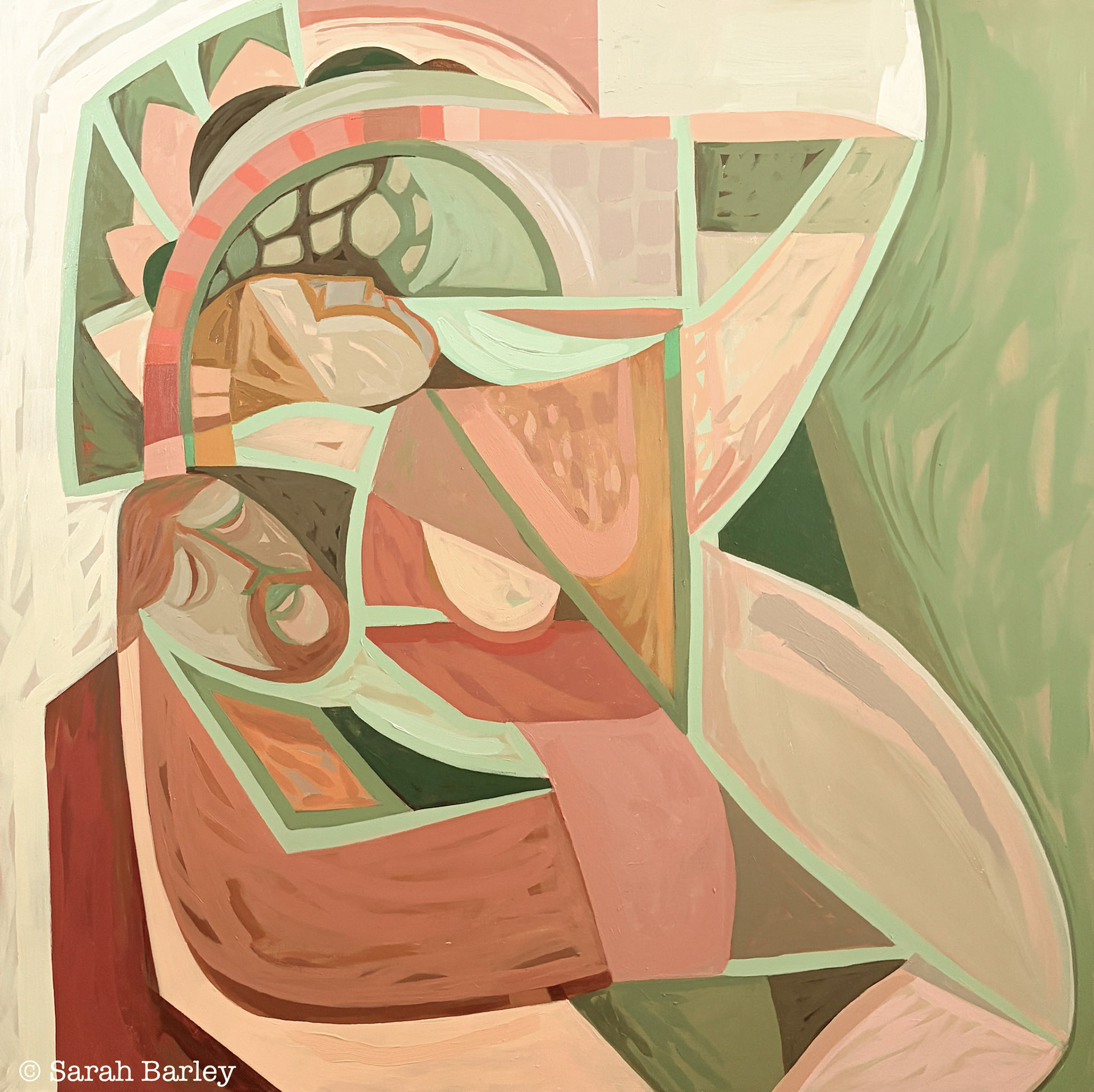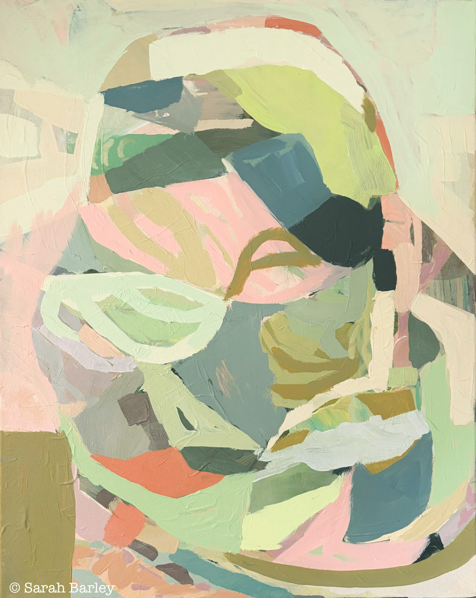 Each painting began with showing up to a blank canvas with no clear idea of what I was going to create. I had to learn to accept the possibility of wasting time and materials, of creating something “ugly,” and of confronting the discomfort of seeing that reflected back at me. I worked this way for four years: no vision, no intention to project a specific emotion, and no predetermined meaning. Instead, I practiced letting go, sitting with discomfort, making shapes, and “listening” rather than expressing.